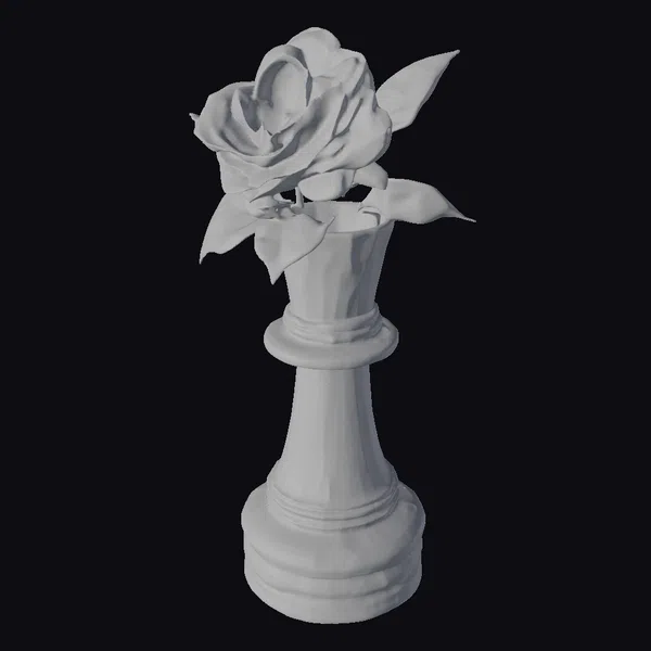 In a striking fusion of organic beauty and geometric form, a lush pink camellia with yellow center and green leaves crowns a transparent, chess rook-inspired vase. The stylized, clear base, reminiscent of a chess piece, provides a fascinating contrast to the soft, realistic flower. The model’s intricate details, from the delicate petals to the subtle sheen on the leaves, invite close inspection. Ideal for use in 3D printing, animation, or virtual reality projects, this model brings a touch of elegance and fantasy to any digital environment. Designers can leverage its unique blend of natural and architectural elements to create captivating scenes.