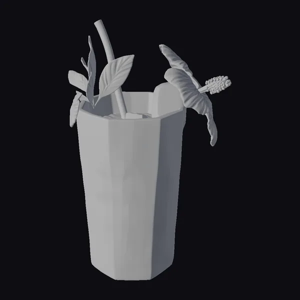 Rendered in a stylized yet inviting manner, this pink cocktail is set against a clean backdrop, emphasizing its colorful and refreshing appeal. The drink is served in a clear glass, filled with ice and a generous pour of pink liquid, topped with a silver straw and beautifully garnished with a large pink flower and several green leaves. The glass’s ridged design adds a touch of elegance, while the ice cubes and straw contribute to the drink’s refreshing and inviting appearance. The combination of pink hues, green accents, and the clear glass makes for a visually appealing scene that captures the essence of a cool summer treat. Ideal for use in advertising, game environments, or as a decorative element in digital designs, this model brings a burst of summer fun to any project.