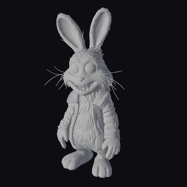 Standing tall with oversized ears and a wide, toothy grin, this pink-eyed bunny exudes a unique blend of charm and unease. The character’s stylized design features a predominantly white and pink color scheme, accented by a vibrant pink jacket and a distinctive greenish hue on one of its feet. The large, pink-rimmed eyes are the focal point, lending an air of cartoonish whimsy. High-quality textures and detailed modeling make this character ready for various applications, including game development, animation projects, 3D printing, and virtual reality experiences. Its Easter-themed appeal is undeniable, yet its creepy-cute aesthetic ensures it can also be used in contexts requiring a darker, more surreal touch.