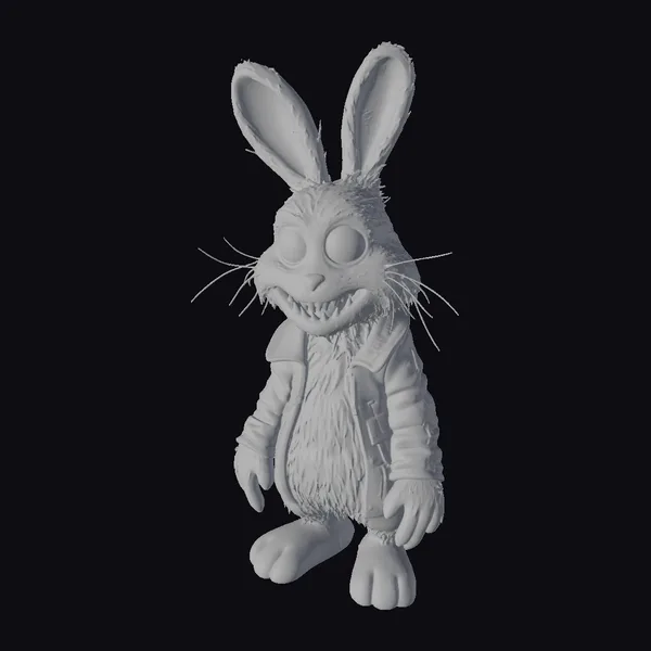 Gaze into the unsettling charm of this pink-eyed bunny, clad in a matching jacket and sporting an unmistakable air of mischief. Its stylized, cartoonish appearance belies a slightly eerie vibe, perfect for adding a touch of whimsy or unease to your projects.