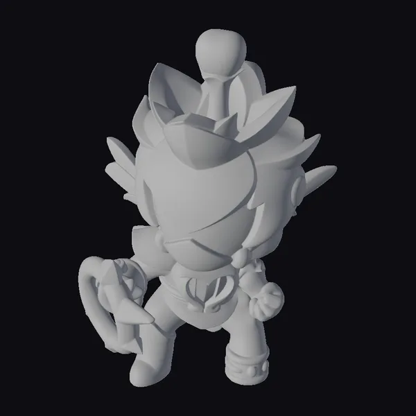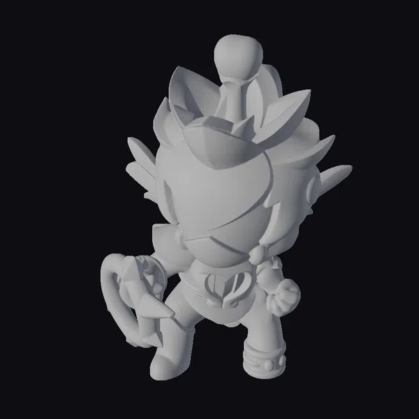 This stylized fantasy warrior stands poised, its pink and gold armor glistening with a shiny finish. The character’s hair is a wild tangle of spiky, pastel-colored locks, topped with a distinctive yellow orb. Its eyes glow with an inner light, casting an intimidating gaze. Clad in a sleek black and pink armor set, complete with a golden weapon at the ready, this figurine is perfect for adding a touch of fantastical combat prowess to any 3D scene, be it for gaming, animation, or virtual reality applications.
