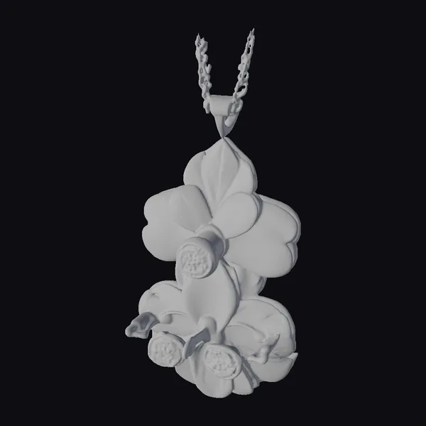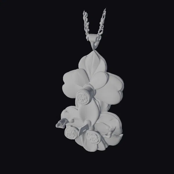 This exquisite floral pendant necklace features a beautifully crafted gold framework adorned with delicate pink and white petals, gradating from deep pink at the base to soft white at the tips. Three sparkling gemstones are strategically placed to resemble the center of the flowers, adding a touch of luxury and glamour. The pendant’s intricate details and realistic textures make it an ideal choice for jewelry designers, artists, and fashion enthusiasts looking to add a touch of elegance to their projects. Whether used in game development, animation, or 3D printing, this model is sure to impress with its high level of detail and realism.