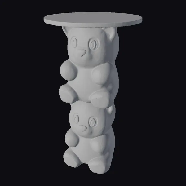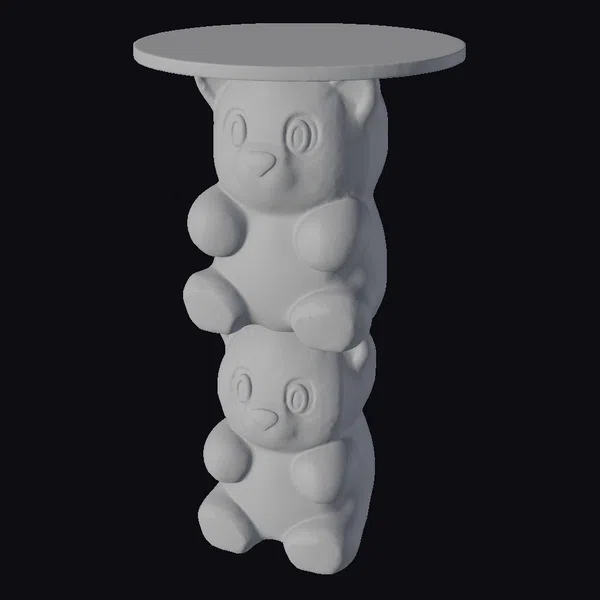 Get ready to indulge in a world of whimsy with this delightful pink gummy bear table. The model features two stacked gummy bears, each with intricate details like rounded bodies, cute facial expressions, and tiny paws. The bears’ shiny, smooth surfaces reflect light, adding to their allure. The tabletop, supported by the bears, is round and flat, providing a sturdy surface for decorative items or snacks. The model’s proportions are spot on, with the bears’ sizes and the tabletop’s diameter perfectly balanced. This charming table is ideal for 3D modeling, animation, or 3D printing projects, and can add a touch of playfulness to scenes, games, or VR/AR experiences.