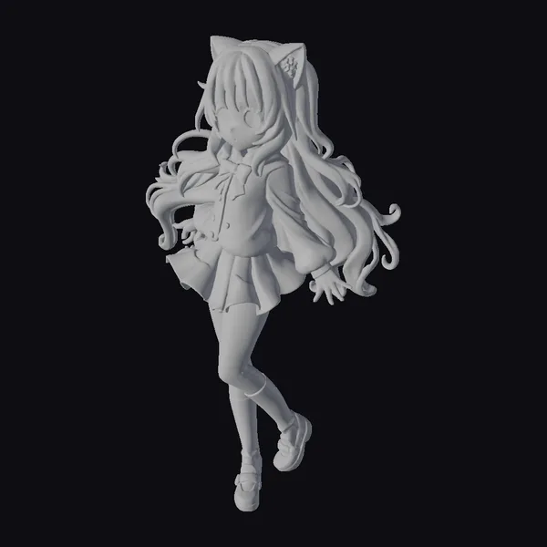Detailed in every curl and fold, this anime-style bad girl boasts an intricate design that captures the essence of whimsy and charm. Her pose, dynamic and carefree, showcases her character with one leg crossed over the other, hands slightly bent as if caught in a moment of playful banter. The texture of her long pink hair, the sheen of her black shoes, and the delicate folds of her white shirt and black skirt are meticulously rendered. Her large, expressive eyes sparkle with a hint of mischief, inviting onlookers into her animated world. This model is perfect for projects requiring a dash of anime flair, suitable for animations, games, virtual reality experiences, and print designs.