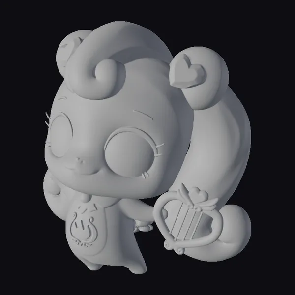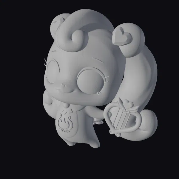 This delightful pink pony stands out with its shiny, metallic coat and vibrant pink mane and tail, curled into adorable buns and adorned with heart-shaped decorations. Its large, expressive eyes feature a mesmerizing gradient of purple and pink, adding to its charm. The pony holds a heart-shaped harp, symbolizing its connection to music and harmony. The golden musical instrument on its belly adds a touch of elegance. This model is perfect for projects requiring a whimsical, fantastical element, such as animations, games, or fantasy-themed designs. Its stylized features and shiny textures make it a standout asset.