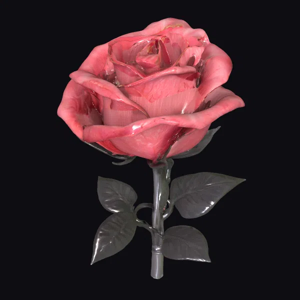 This stunning pink metal rose boasts intricately designed petals that appear almost lifelike, with a subtle sheen that mimics the gentle glow of natural light. The stem and leaves are crafted from a darker metal, providing a striking contrast to the soft pink hue. The model’s realistic proportions and delicate details make it perfect for use in various applications, including games, 3D printing, virtual reality, animation, and design projects. Its elegance and beauty are sure to captivate audiences and add a touch of sophistication to any scene.
