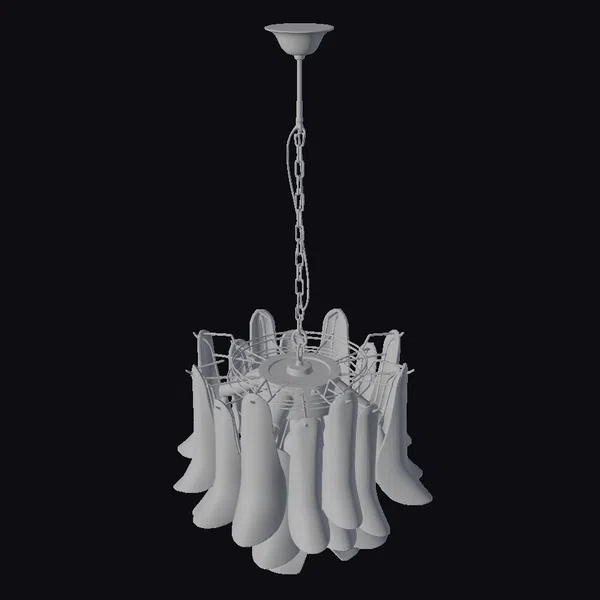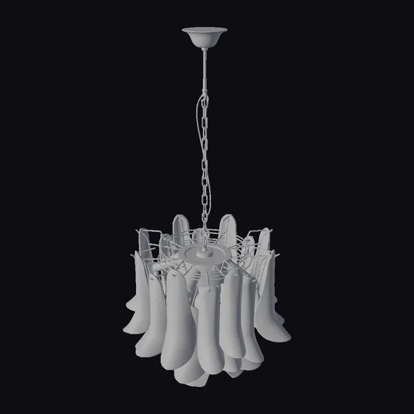 Detailed with precision, the pink Murano glass chandelier features a metal framework from which numerous flared, soft pink glass pieces are suspended, each one meticulously crafted to refract light. The fixture is hung from a sturdy chain, allowing for adjustable placement. Its textures, from the smooth glass to the metallic framework, offer a realistic appearance. The lighting interacts with the glass pieces, enhancing their pink hues and adding depth. This chandelier is perfect for designers and creators looking for a sophisticated lighting fixture to enhance games, 3D environments, animations, or architectural visualizations with a touch of elegance.