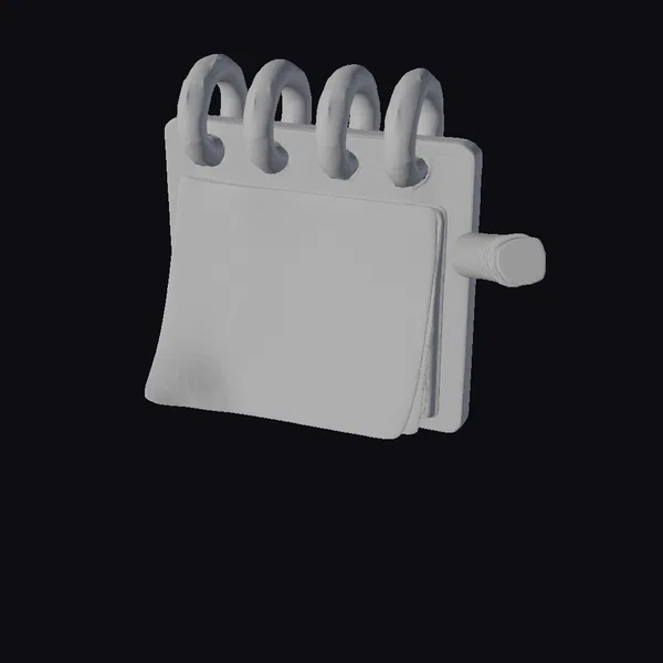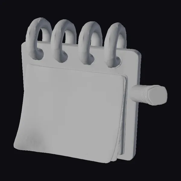 Detailed with precision, this 3D model of a pink notebook features a vibrant yellow notepad peeking out from its pastel pink cover, secured with shiny silver rings. A blue pencil with a yellow tip rests against the notebook, adding a pop of color. The notepad boasts a subtle white watermark. The model’s clean lines and simple textures make it perfect for use in educational or office settings within games, animations, or design projects. Its illustrative style brings a touch of whimsy to any scene.