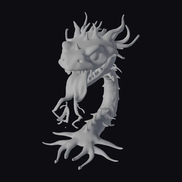 This eerie creature boasts a pink, elongated body that morphs into a mass of tentacles at its base, evoking a sense of otherworldly horror. Its head is a twisted amalgamation of features, with a long, dangling tongue and sharp teeth set against a backdrop of glowing, unsettling eyes. The creature’s skin is a deep pink hue, with darker shades accentuating its many tentacles and the texture of its body. Ideal for use in horror-themed games, animations, or as a striking design element, this model is sure to leave a lasting impression. Its unique blend of cartoonish fantasy and dark horror elements makes it a versatile addition to any project.
