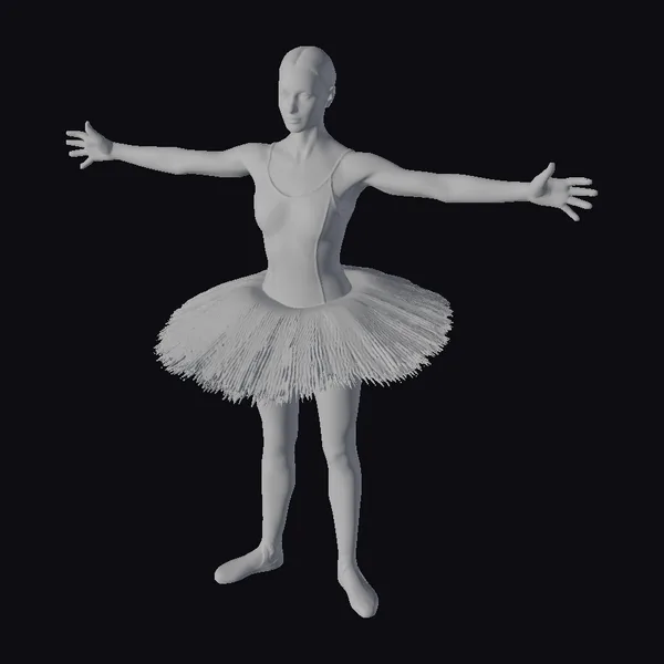 In a majestic pose, the ballerina stands with her arms outstretched, as if caught in a moment of gentle rotation. Her pink tutu, with its subtle gradient from light to darker pink and delicate silver trim, appears almost lifelike, inviting the viewer into a world of ballet. The model features a realistic human figure with detailed anatomy, from the smooth texture of her skin to the intricate folds of her tutu. The white leotard hugs her form, while her tights and ballet shoes add a touch of authenticity. This model is perfect for projects requiring a realistic ballet dancer, such as animations, games, or architectural visualizations. Its detailed appearance and elegant pose make it an excellent choice for any scene requiring a touch of grace and poise.