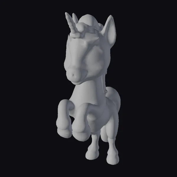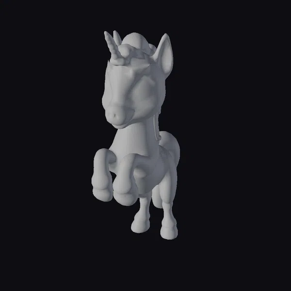 Perched dynamically on its back legs, this adorable pink unicorn figurine exudes joy and playfulness. The model’s pose showcases its muscular yet cute physique, complete with a fluffy pink mane and tail that cascade down its back. Its large, cartoon-style eyes are accentuated with bright blue highlights, adding to its endearing expression. The golden horn on its forehead shines brightly, completing the unicorn’s magical appearance. Crafted with attention to detail, this figurine is perfect for fans of fantasy creatures and cartoon-style art. Its small size makes it ideal for display on a desk, shelf, or as a charming addition to a child’s room. Designers and artists will appreciate the model’s intricate details, making it suitable for 3D printing, animation projects, or virtual reality experiences.