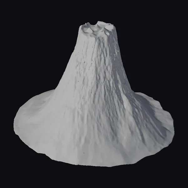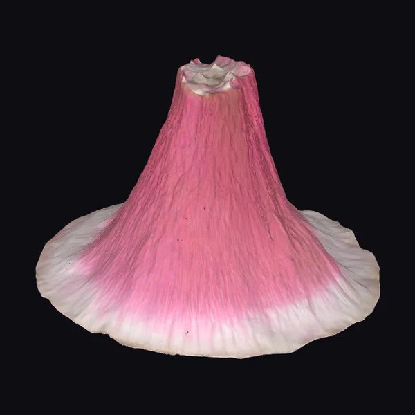 In a burst of creative expression, a volcano’s eruption is reimagined in a stylized form. The model’s intricate details reveal a textured surface, gradating from deep pink at the apex to soft white at the base, suggesting molten lava flows. The shape is both organic and symmetrical, with a delicate balance between the fury of the eruption and the serenity of its presentation. The pink and white color scheme imbues the scene with a sense of fantasy, making it perfect for projects requiring a touch of the extraordinary. Whether for game environments, animations, or architectural visualizations, this model brings a unique element to any creative project.