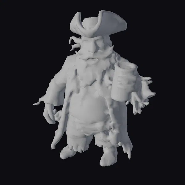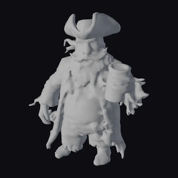 In a pose that exudes both relaxation and readiness, this pirate character showcases intricate details such as the frayed edges of his coat, the sheen on his beer mug, and the texture of his weathered skin. The stylized approach to his design amplifies his humorous and playful demeanor, making him perfect for projects that require a touch of whimsy. His application is versatile – from animation and games to 3D printing and virtual reality experiences. The pirate’s dynamic pose and expressive facial features capture a moment in time, inviting viewers to imagine the story behind his cheerful demeanor.