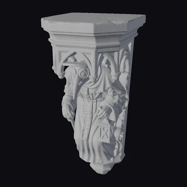 The Model “Plague Doctor Gargoyle Console” is also available upon request in many other 3D formats, such as 3MF, BLEND, FBX, OBJ, USDZ and others, making it easy to integrate into your project.