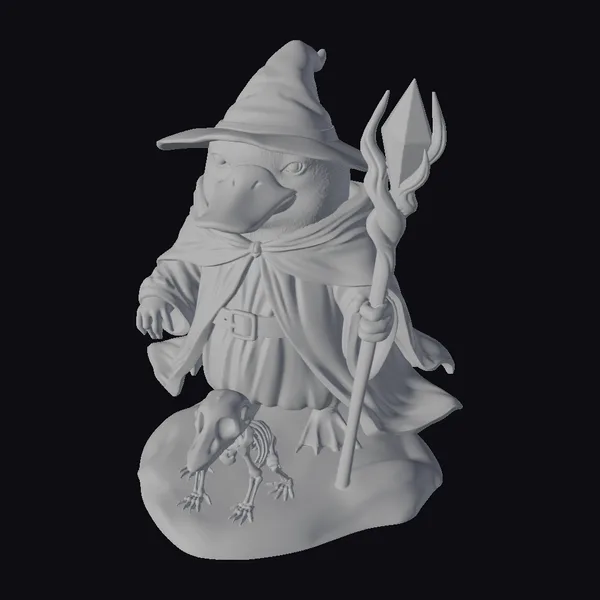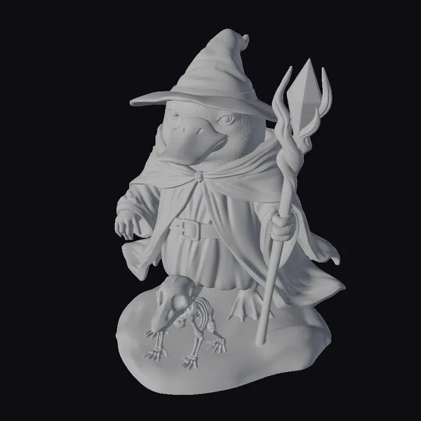 Perched atop a rugged base, the raven wizard stands imposingly, its plague doctor’s mask glinting in the dim light. The staff, adorned with a vibrant purple crystal, seems to pulse with an otherworldly energy. A delicate skeletal creature cowers at its feet, as if awaiting a mystical command. The model’s intricate textures – from the soft folds of the cloak to the glossy sheen of the crystal – invite the viewer to step into a realm of dark fantasy. Ideal for games, animation, or 3D printing, this model promises to add a touch of mystique to any project.