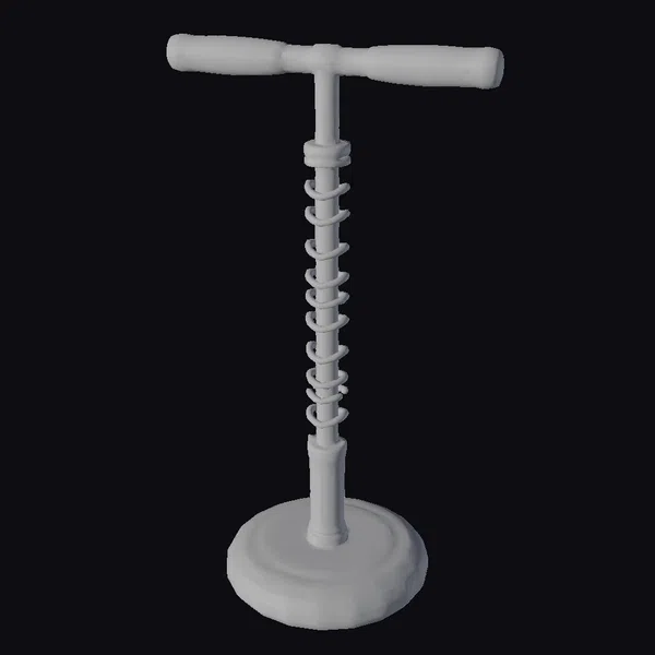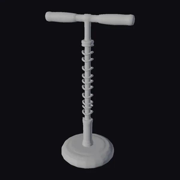Standing tall with its T-shaped handle and inflated blue base, this pogo stick model showcases intricate details such as the coiled spring mechanism and textured grip on the handles. The base features a striking blue and white color scheme, while the spring and lower pole are detailed with black and beige tones. Ideal for use in 3D environments, animations, or games, this model brings a dynamic element to any scene. Designers can leverage its realistic appearance for projects requiring a lifelike pogo stick, from children’s play areas to outdoor recreational settings.