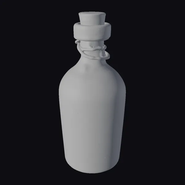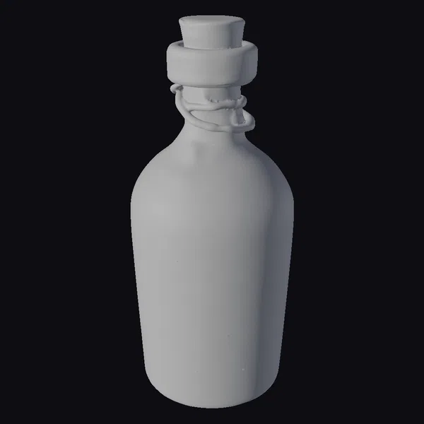 The glass vial stands with a rounded body and a narrow neck, sealed with a cork stopper that appears slightly weathered. Twisted rope encircles the neck, adding to the vial’s ancient, mystical look. The pink liquid inside the vial glows with an otherworldly light, and a grim skull floats within, its presence seeming to darken the surrounding liquid. The combination of the pink liquid, the skull, and the corked top creates a compelling visual that suggests dark magic or a poisonous concoction. This model would be perfect for adding a touch of mystery and danger to games, animations, or 3D scenes, particularly in settings that require elements of fantasy, alchemy, or dark science.