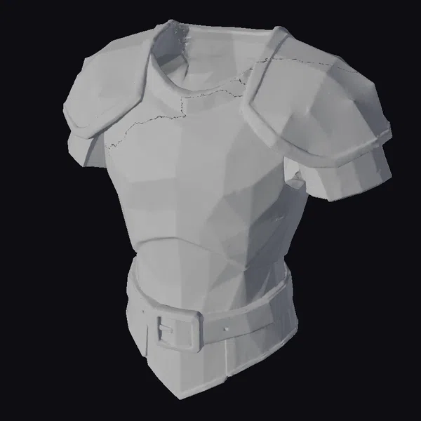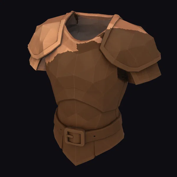 Detailed with precision, this polygonal armor torso boasts a rich, earthy tone and an abstract, low-poly design. The armor’s geometric facets catch the light, suggesting a weathered, battle-hardened appearance. A sturdy belt cinches at the waist, while short sleeves add to the piece’s imposing stance. Ideal for use in games, 3D printing, VR/AR experiences, animation, and design projects, this model brings a touch of medieval flair to any creative endeavor.