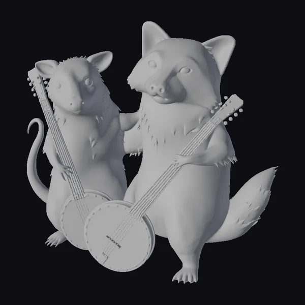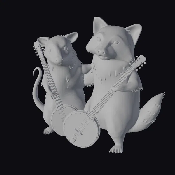 The Model “Possum and Raccoon Musicians” is also available upon request in many other 3D formats, such as 3MF, BLEND, FBX, OBJ, USDZ and others, making it easy to integrate into your project.