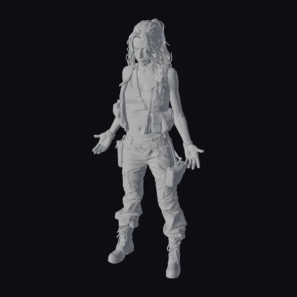 The Model “Post-Apocalyptic Female Survivor” is also available upon request in many other 3D formats, such as 3MF, BLEND, FBX, OBJ, USDZ and others, making it easy to integrate into your project.