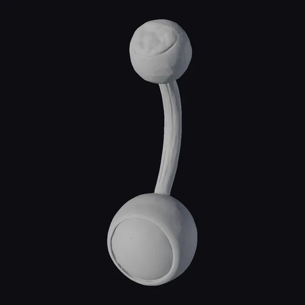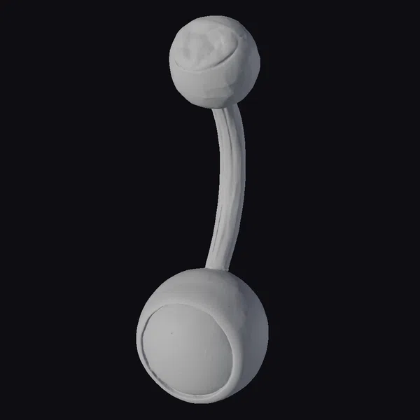 This stunning navel ring boasts a unique, stylized design that is sure to turn heads. The ring’s body is crafted from a sleek, silver-toned metal, curved to fit comfortably around the navel. Two oval-shaped gems, encased in clear plastic or glass, dominate the design. The top gem shimmers with a vibrant red and orange gradient, while the lower gem transitions from blue to green, creating an iridescent effect that seems to shift with every movement. The ring’s surface is smooth and polished, catching the light and amplifying the prismatic colors. With its eye-catching appearance, this navel ring is perfect for those who want to add a touch of glamour to their outfit, whether for a special occasion or everyday wear. Its detailed design makes it an excellent choice for 3D modeling projects, animation, or virtual reality applications.