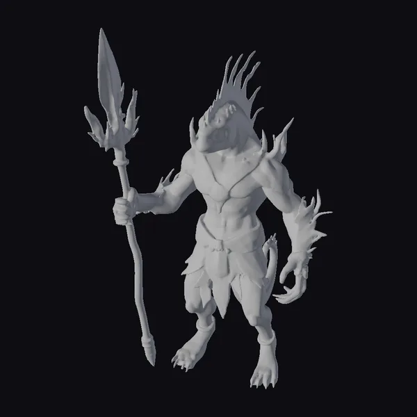 Detailed in every scale and spike, this psychedelic reptilian humanoid warrior beast exudes an air of ancient mysticism and raw power. Its body is a vibrant green, overlaid with shimmering purple and pink hues that seem to shift in the light, suggesting a life of its own. The creature’s muscular physique is accentuated by its pose, one hand gripping a staff that mirrors the colorful, spiky crown on its head. The staff, like the beast’s armor, is adorned with glowing, iridescent spikes, adding to the overall sense of magic and might. Ideal for projects requiring a unique, fantastical character, this model is suited for use in games, animated films, VR/AR experiences, and architectural visualizations where a touch of the extraordinary is needed.
