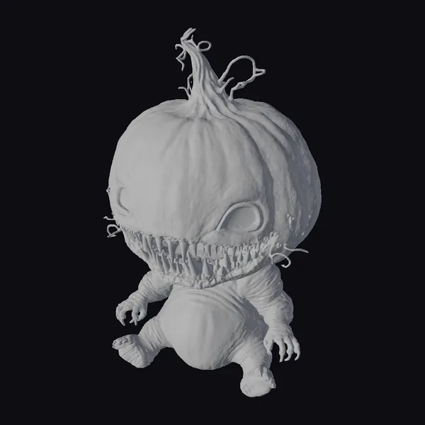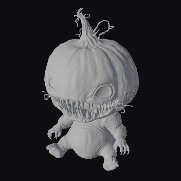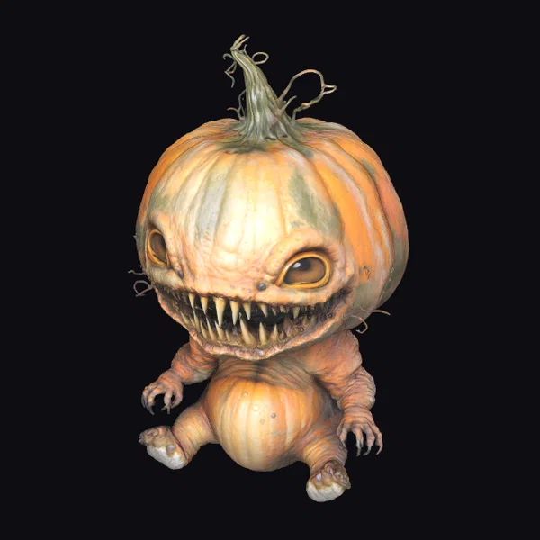 Detailed with precision, the pumpkin monster baby boasts a large, intricately textured pumpkin head complete with a twisted stem and a menacing array of sharp teeth. Its eyes glow with an otherworldly light, casting an eerie ambiance. The baby’s body, also resembling a smaller pumpkin, is adorned with tiny arms and legs, each ending in sharp claws. The model showcases exceptional detail, from the wrinkles on the pumpkin skin to the texture of the tiny claws. Ideal for use in games, 3D printing, VR/AR experiences, animations, or designs that call for a touch of Halloween magic and terror.