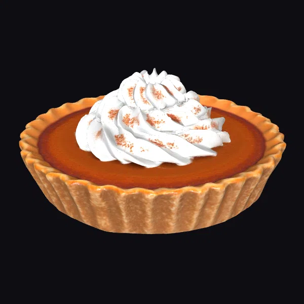 Detailed to perfection, this pumpkin pie boasts a flaky, golden-brown crust that’s crimped to perfection. The filling is a vibrant orange hue, inviting you to take a bite. A generous helping of whipped cream crowns the pie, sprinkled with a pinch of cinnamon for added warmth. The texture of the crust and the smoothness of the filling are meticulously rendered, making this 3D model perfect for culinary designs, Thanksgiving-themed projects, or food blogs. Bring the cozy atmosphere of a family gathering to your projects with this delightful treat.