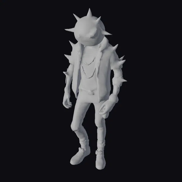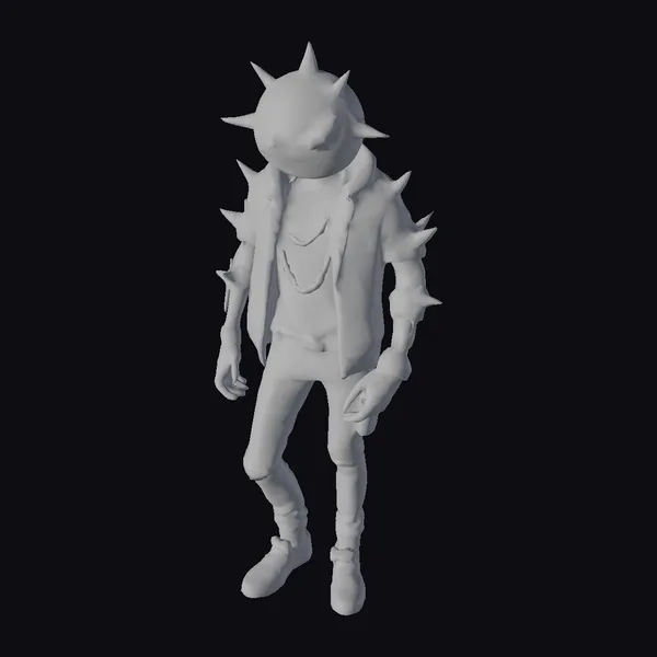This stylized punk robot boasts a unique blend of cyberpunk and demonic elements. Its emoji face features a menacing grin, while its purple jacket and gold accessories evoke a sense of rebellion. The robot’s spiky head and arms add to its intimidating appearance, balanced by the vibrant pink and gray shoes. With its intricate details and bold design, this character is perfect for projects requiring a striking, edgy presence. Ideal for use in games, animations, or 3D printing, this model is sure to make a statement.