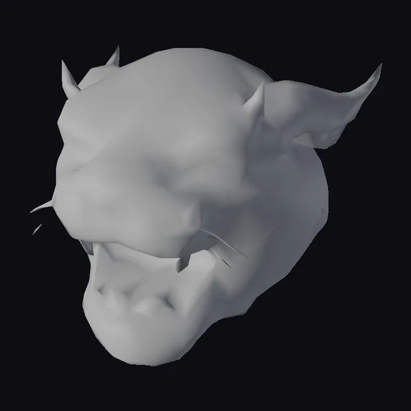 This stylized purple wildcat head 3D model captures the essence of a fierce feline with its mouth wide open, showcasing sharp teeth and an intense gaze. The model’s surface is adorned with striking purple and gray stripes, applied in a stylized manner that enhances its cartoonish appeal while maintaining a level of realism in its features. The eyes are particularly noteworthy, with a piercing look that seems to challenge the viewer. The model’s low-poly style ensures it will integrate seamlessly into various 3D environments, from video games and animations to architectural visualizations and design projects. Its unique blend of colors and stylized features makes it an excellent choice for projects requiring a fantastical or artistic touch.