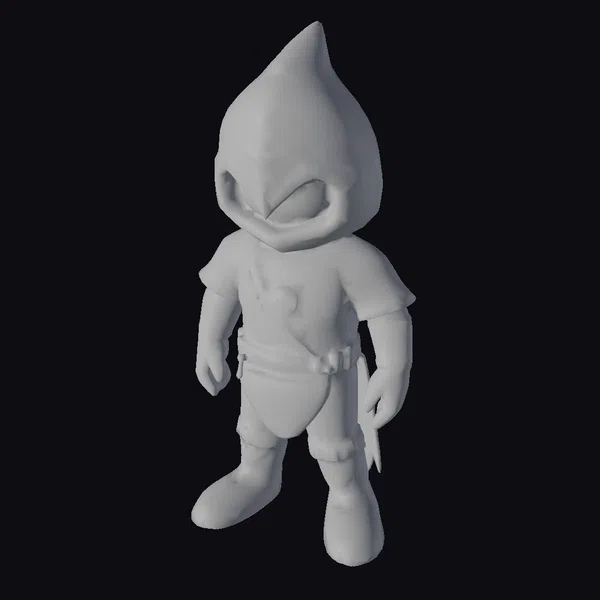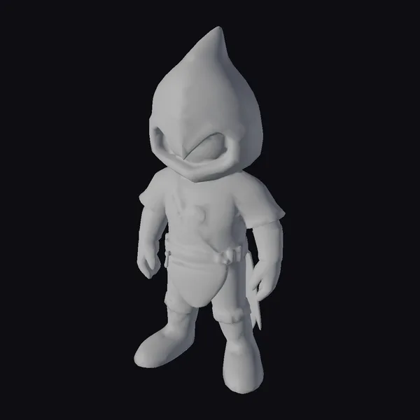 Standing proudly in an A-pose, this stylized knight boasts a vibrant purple hood with a pointed top, complemented by a gray belt and armor. The model’s texture is a delightful mix of smooth and stitched elements, giving it a handcrafted feel. The bright purple fanny-pack adds a pop of color, while the white pendant hanging from the neck adds a touch of elegance. This model is perfect for use in games, animations, or 3D printing projects, where a dash of fantasy and humor is needed. Its unique design and colorful appearance make it an excellent choice for designers seeking to add a lighthearted touch to their work.