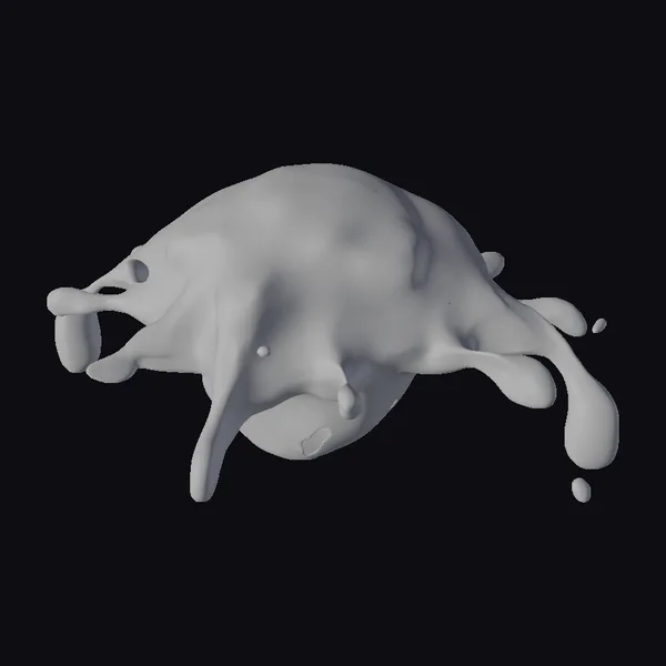 In a mesmerizing display of fluid dynamics, a glob of purple liquid bursts forth, suspended in a moment of weightless elegance. The splash’s rounded body tapers into multiple tendrils, each one a slightly different shade of purple, gradating from deep, rich tones to lighter, more pastel-like accents. The surface of the liquid appears almost velvety, with a subtle sheen that hints at its viscous nature. As the light dances across its surface, the liquid seems to shift and ripple, adding a sense of movement to its static pose. This model would be perfect for adding a pop of color and energy to games, animations, or 3D scenes. Its abstract nature makes it versatile for various applications, from sci-fi environments to artistic renderings.