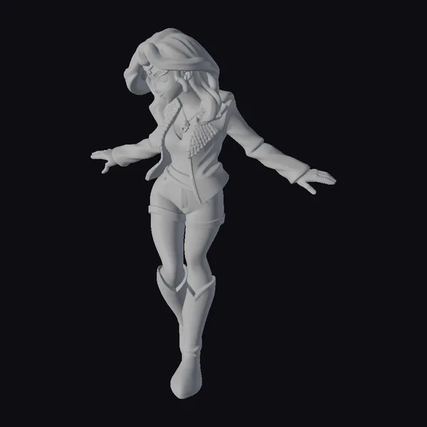 This stylized female character stands out with her striking purple and pink metallic sheen, which covers her jacket, shorts, boots, and gloves. Her pink hair is styled in loose waves, adding to her dynamic and youthful appearance. The character’s pose, with arms outstretched and one leg lifted, conveys a sense of movement and energy. The detailed textures and shiny finish give her a highly realistic and engaging look. Ideal for use in animations, games, or virtual reality experiences, this model can bring a pop of color and excitement to any project. Her cartoonish yet detailed design makes her versatile for various creative applications.