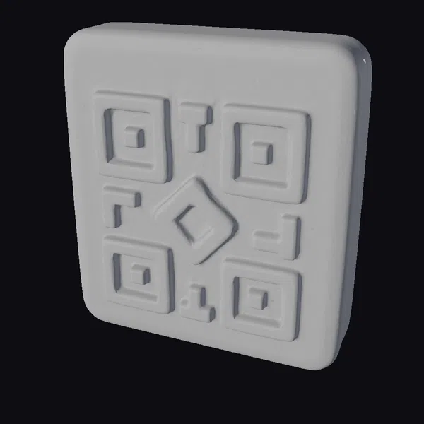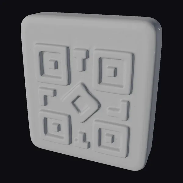 Perched at a dynamic angle, the purple QR code icon exudes modernity with its sleek, rounded edges and neon pink details. The stylized code features a mix of squares and rectangles, each with a glowing effect that adds depth and visual interest. The icon’s surface appears smooth and matte, providing a subtle contrast to the bright, raised QR code elements. This model is ideal for use in various projects, such as game assets, 3D printing, VR/AR experiences, animations, or graphic design. Its unique blend of neon colors and stylized design makes it a standout element for any digital or physical platform.