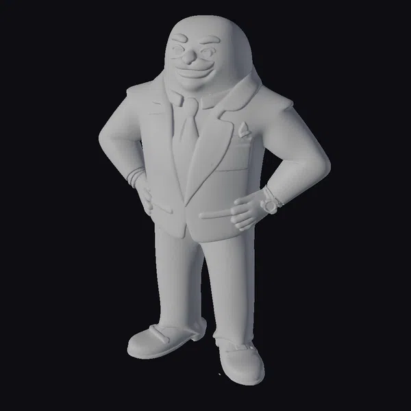 Detailed with precision, this 3D model showcases the Purple Suave Gentleman in a confident stance, hands on hips and a charming smile on his face. His purple skin contrasts beautifully with his beige suit, complete with a crisp white shirt, tie, and pocket square. The model’s textures and lighting highlight its glossy appearance, making it suitable for various applications, including games, animation, 3D printing, and virtual reality experiences. Its unique blend of humor and style ensures it will stand out in any scene.