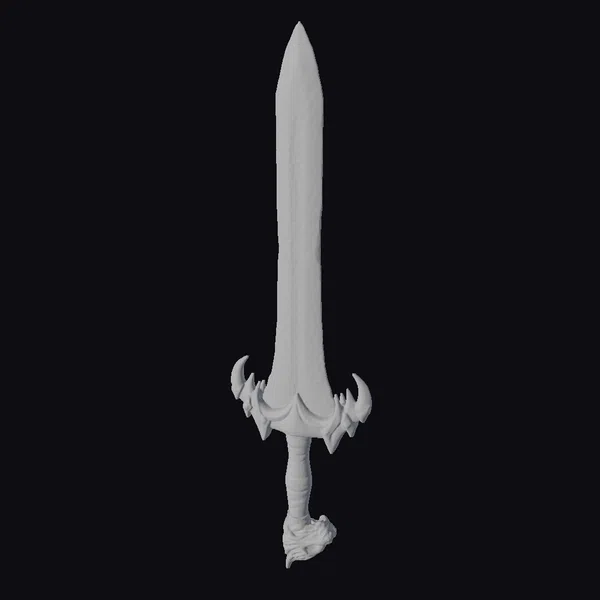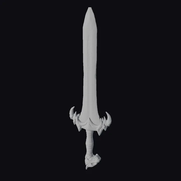 Standing tall with its pointed tip and slender blade, this purple sword exudes an aura of mystique and power. The blade itself features a mesmerizing gradient of purple hues, transitioning from light to dark, with an intricate pattern etched along its length. The guard is adorned with curved, claw-like protrusions that add to the sword’s fantastical appearance. A golden emblem on the blade’s center adds a touch of luxury and sophistication. The hilt, wrapped in a dark material, provides a striking contrast to the vibrant purple of the blade. This sword model is perfect for use in game development, animation projects, or as a 3D printing project, offering a unique and captivating visual element. Its detailed design and realistic proportions make it an excellent choice for creators seeking to add a touch of fantasy to their work.