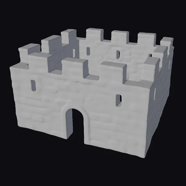 Step into the midst of a medieval fantasy with this intricately detailed quadratic dungeon castle wall, exuding a sense of ancient grandeur and mystery. Crafted with precision, this model showcases a weathered stone façade, complete with a central archway and battlements that invite the imagination to run wild with tales of old. The gray tones and textured surfaces bring a realistic ambiance, perfect for projects requiring a touch of historical fantasy.