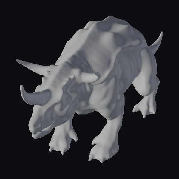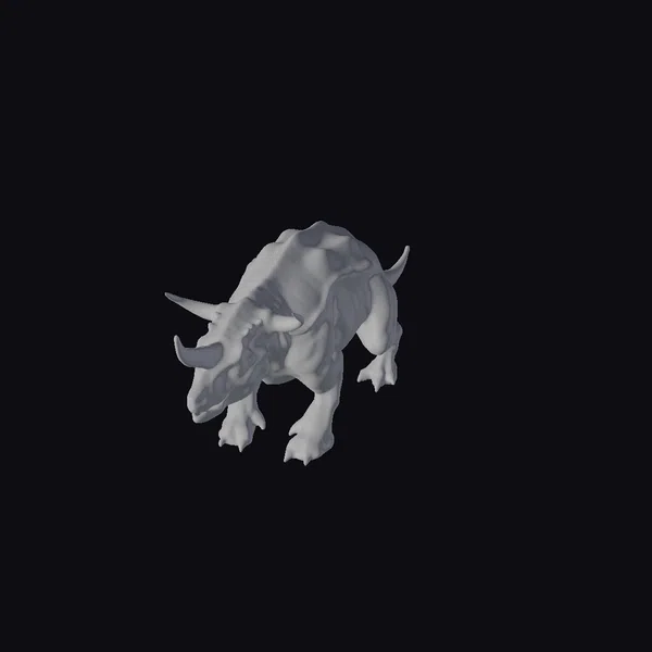 In a powerful stance, this quadruped dinosaur showcases its impressive physique, with well-defined muscles rippling beneath its tan and brown skin. The creature’s head is adorned with two sharp horns, while its feet are equipped with long, curved claws, perfect for tearing flesh and crushing bone. Its short, stubby tail adds to its menacing appearance. This realistic model would be perfect for use in games, 3D printing, VR/AR experiences, animation, and design projects, where a fearsome, prehistoric creature is needed. The level of detail in this model, from the texture of its skin to the shape of its claws, makes it an excellent choice for any project requiring a lifelike dinosaur.