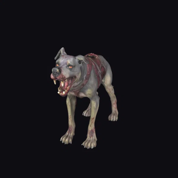 Standing menacingly, this rabid zombie dog 3D model exudes an aura of fearsome unpredictability. Its muscular physique and sharp teeth are accentuated by the eerie glow of its eyes, while the exposed flesh and blood on its body contribute to a chillingly realistic appearance. The model’s detailed textures and lifelike pose make it an excellent choice for horror-themed projects, animations, or video games. Its terrifying presence is sure to leave a lasting impression on viewers.