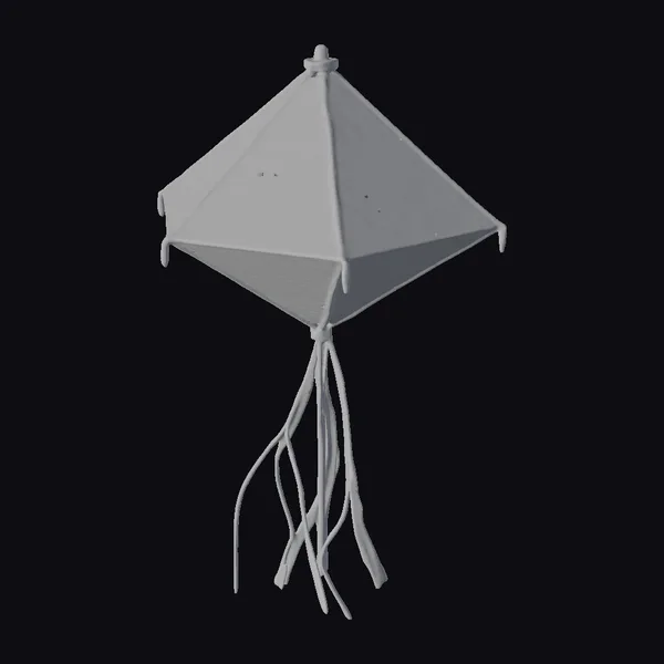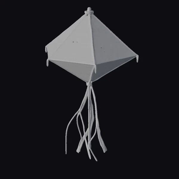 Suspended in mid-air, the kite’s diamond-shaped body gleams with a mesmerizing rainbow hue, gradating from red to orange, yellow, green, blue, and purple. The slightly elongated bottom point enhances its aerodynamic profile, while the colorful ribbons streaming behind create a sense of dynamic movement. Crafted with attention to detail, this kite model showcases a beautiful interplay of light and color, making it an eye-catching addition to any outdoor setting or creative project. Ideal for use in games, animations, or as a 3D print, this model brings a touch of whimsy and joy to any scene.