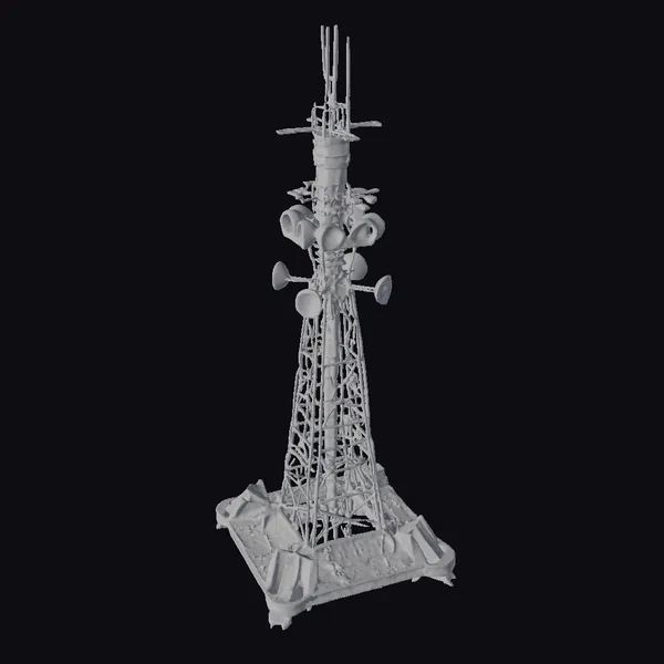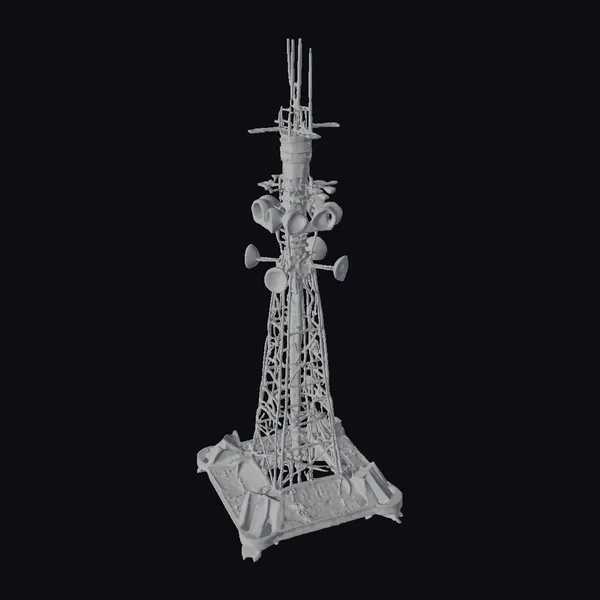 Perched atop a square base, the futuristic radio tower stretches towards the sky, its intricate latticework a tapestry of interconnected metallic beams. The structure’s sides are adorned with a series of colorful, cone-shaped protrusions, their vibrant hues of pink, blue, and purple casting a mesmerizing glow. A cluster of antennae and satellite dishes crowns the tower, their sleek lines and metallic surfaces reflecting a dazzling array of colors. As the light catches the tower, its rainbow sheen shimmers, imbuing the structure with an otherworldly essence. Ideal for use in sci-fi games, animations, or architectural visualizations, this 3D model brings a touch of futuristic flair to any project. Its detailed textures, precise geometry, and realistic proportions make it a versatile asset for designers and artists seeking to create immersive, high-quality environments.