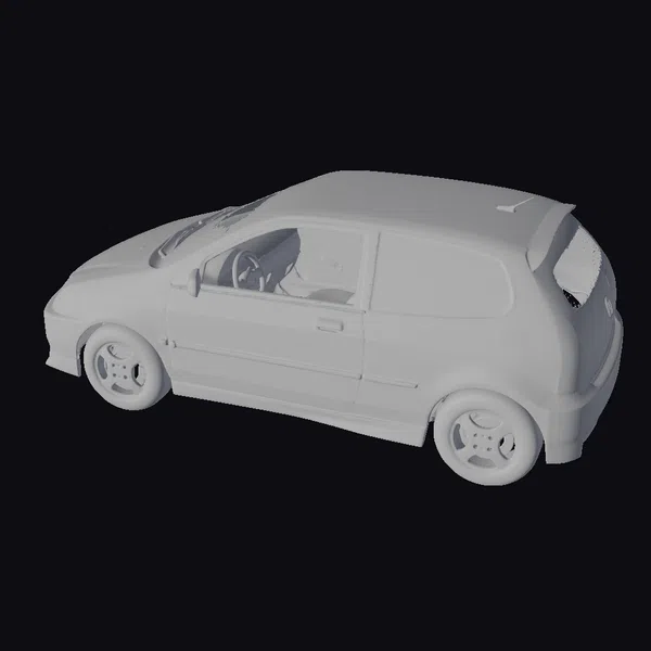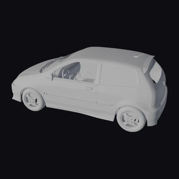 Sleek lines and a vibrant red finish define this low-poly compact Japanese hatchback car, reminiscent of 1997 models like the Honda Civic EK9. Perfect for mobile game assets or simulations, its minimal polygon count ensures efficient rendering.
