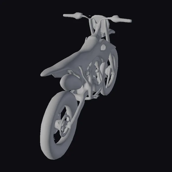 Positioned at an angle, the dirt bike showcases its aggressive stance, with the front wheel slightly raised and the rear wheel pointing downwards. The red bodywork gleams with a smooth texture, while the black handlebars and tires provide a rugged contrast. The blue frame and silver front fork add a touch of sophistication to the overall design. This 3D model is perfect for use in games, animations, or architectural visualizations where a high-energy vehicle is needed. Its realistic design and attention to detail make it an excellent choice for designers and developers looking to add a thrilling element to their projects.
