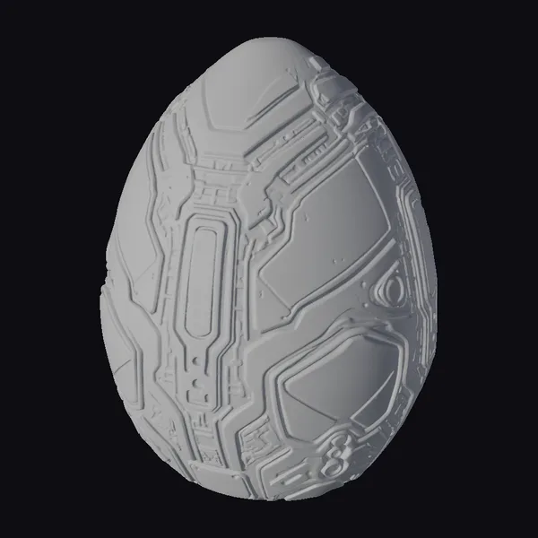 This stunning red metallic egg boasts a highly detailed, ornate design, complete with raised gold accents and glowing yellow inserts that evoke a sense of advanced technology. The egg’s surface is divided into sections by metallic lines, giving it a mechanical appearance. The glowing details add a dynamic, high-tech feel, making this egg a standout piece. Its unique blend of traditional Easter egg design and futuristic elements makes it an ideal choice for various applications, including games, 3D printing, VR/AR experiences, animation, and design projects. The egg’s metallic sheen and glowing accents ensure it will capture attention in any context.