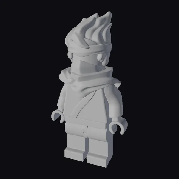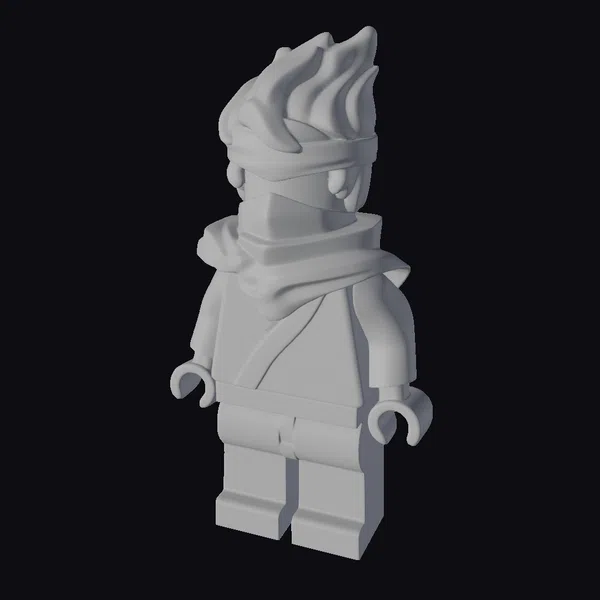 Standing tall with a poised stance, this stylized ninja figure boasts a richly detailed appearance. The brown hair spikes upwards, complemented by a matching red headband and outfit that showcases a golden peace sign on the chest. Two black and yellow weapons cross over the torso, adding to the ninja’s arsenal. The figure’s arms are relaxed by its sides, with hands sporting a reddish hue. The overall design exudes a playful yet action-packed vibe, making it perfect for various creative projects such as games, animations, or even 3D printing. The model’s stylized features and vibrant colors ensure it captures attention and inspires imagination.