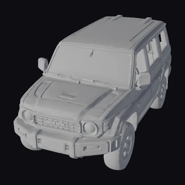 Perched on a rugged terrain, this red offroad SUV takes center stage with its aggressive stance and robust build. The detailed model boasts a rich red texture, complemented by black accents on the grill, bumper, and roof racks, exuding a sense of power and resilience. The vehicle’s design is characterized by its high ground clearance, wide tires, and angular lines, making it a formidable presence on any terrain. The interior, though simple, is detailed enough to hint at its functional purpose. Ideal for projects requiring a rugged, dependable vehicle, this model is suited for use in games, 3D printing, VR/AR experiences, animations, and design visualizations.