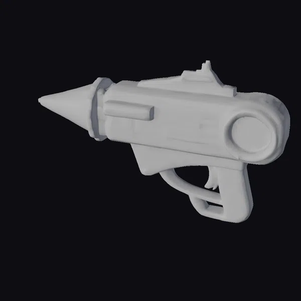 Detailed with precision, this cartoon-style toy ray gun boasts a striking red body with a conical nozzle and a circular yellow power source encased in red. The black grip and accents add a sleek contrast to the overall playful design. The ray gun’s proportions are perfectly suited for a variety of applications, from animation and games to print and VR/AR experiences. Designers and creators can leverage this model’s unique aesthetic to add a pop of fun and futurism to their projects.