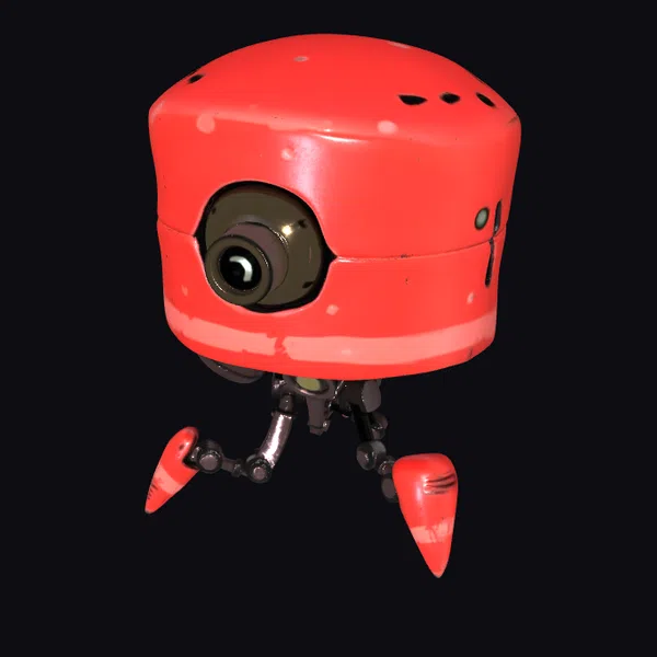 Standing tall with its distinctive red hue, this robot walker model showcases a blend of industrial and futuristic design. The rounded body, adorned with ventilation holes and a dark metallic eye, sits atop mechanical legs that end in sharp, red tips. The model’s pose suggests movement and exploration, inviting users to imagine scenarios in games, animations, or virtual reality experiences. Its stylized appearance makes it a versatile asset for projects requiring a touch of sci-fi flair, from conceptual design to final renderings.