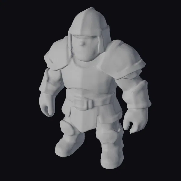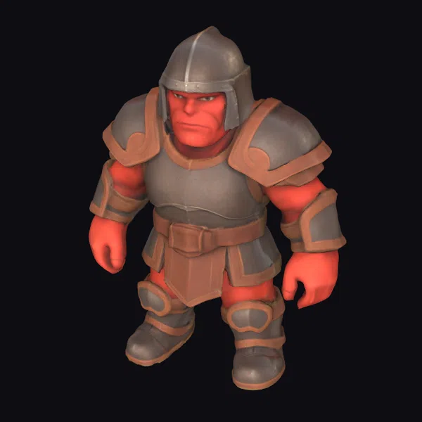 Standing tall with a robust build, this orc warrior model showcases intricate details in its armor, from the segmented shoulder guards to the articulated greaves on its legs. The stylized approach enhances its fantastical nature, making it a compelling addition to any digital scene. The model is well-suited for use in game development, animation projects, or as a striking visual element in graphic design. Its detailed texture and expressive facial features bring a level of realism to its stylized form.
