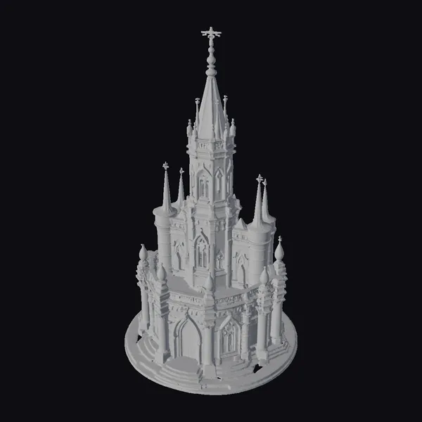 This exquisite anime-style castle model boasts a striking red and white color scheme, with a tall central spire and numerous smaller turrets, each adorned with delicate architectural details. The model’s base is circular, providing a sturdy foundation for the elaborate structure above. The castle’s design is characterized by pointed arches, columns, and ornate stonework, creating a sense of grandeur and nobility. The model’s intricate details and realistic textures make it an ideal choice for use in games, animation, print, VR/AR, and design applications.